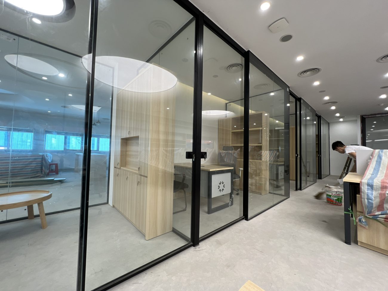 HIện nay, ngoài vách kính cường lực ứng dụng trong vách ngăn văn phòng còn