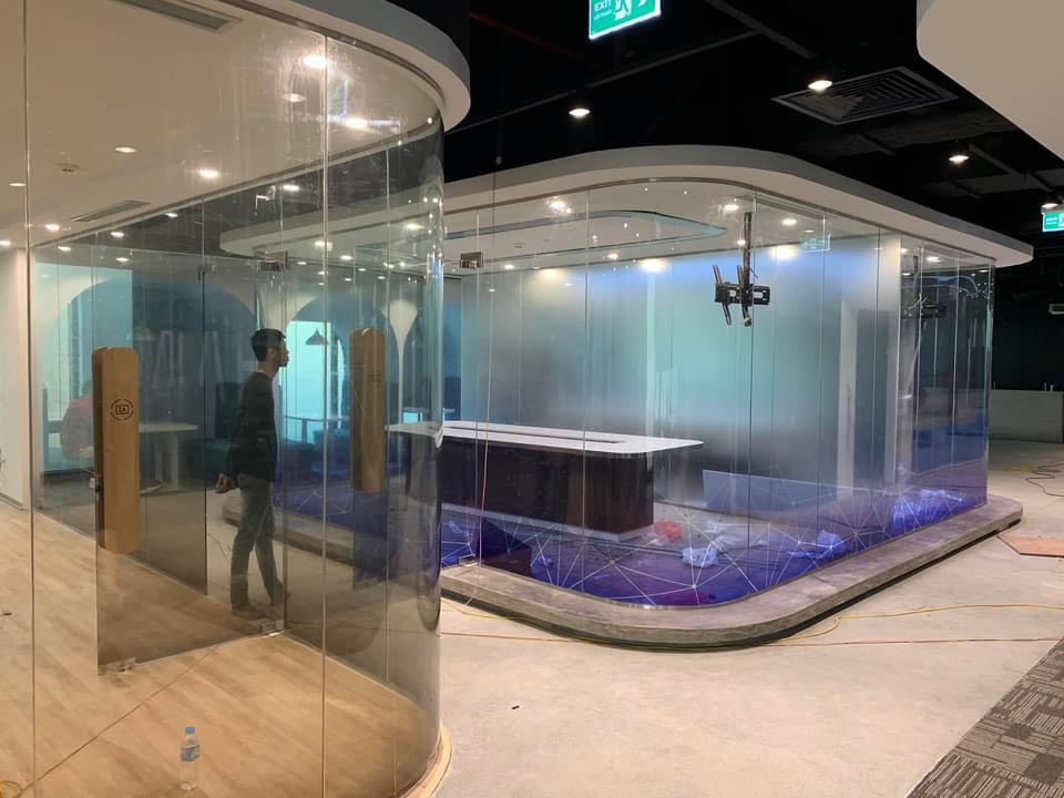Công trình đã thi côngCông trình vách ngăn văn phòng kính uốn cong nghệ thuật tại Hà Nội Công trình thi công lắp đặt hệ cửa vách ngăn phòng kính cong nghệ thuật tại Hà Nội