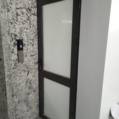 Cửa đi mở quay 1 cánh kính trắng sữa chia ô
