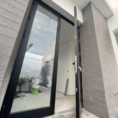 Cửa đi mở quay 02 cánh –   nhôm xingfa nhập khẩu tem đỏ Quảng Đông dày 2mm, kính dán an toàn 02 lớp 6.38mm, keo đồng mầu theo nhôm. Zoăng chính hãng EPDM