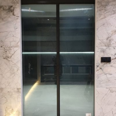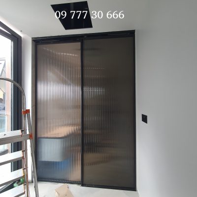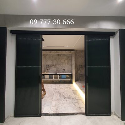 Cửa nhôm Slim 2 cánh mở lùa sang 2 bên kính sóng, không ray dưới