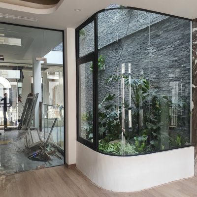 Cửa nhôm vách kính uốn cong lắp đặt cho tiểu cảnh