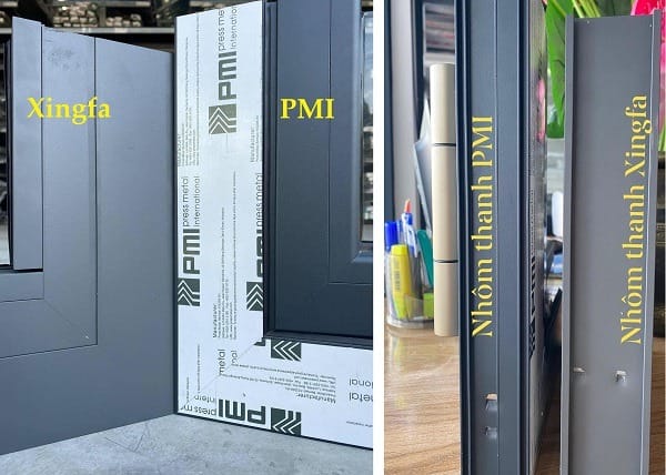 Nhôm PMI Hệ XF55: hệ nhôm này được thiết kế giống như hệ Xingfa về kiểu dáng, độ dày và tiết diện nhôm, thanh nhôm