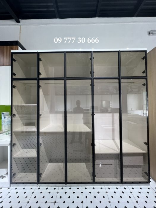 Tủ áo cánh kính màu xanh đen, hệ nhôm 20×20 và hệ nhôm 20×45 tùy khách hàng lựa chọn