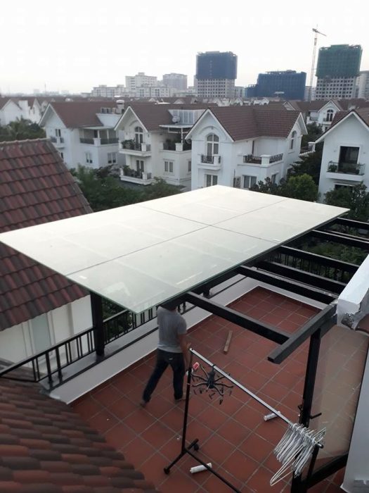 – Khả năng sử dụng: Mái kính cường lực mang lại hiệu quả trong việc lấy sáng, che mưa, khả năng tương thích với mọi không gian từ ban công, sân vườn hoặc trên tầng thượng thậm chí còn sử dụng làm mái tum hoặc mái giếng trời